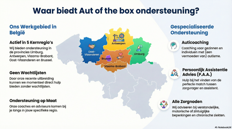 Vanuit Aut of the box bouwt Valerie verder op haar expertise als auticoach en persoonlijk assistentieadviseur. Ze begeleidt gezinnen en volwassenen in hun zoektocht naar ondersteuning die echt past bij hun leven. Als zorgouder weet ze hoe kwetsbaar die zoektocht kan zijn. Daarom werkt ze zorgvuldig, mensgericht en met blijvende aandacht voor de klik.